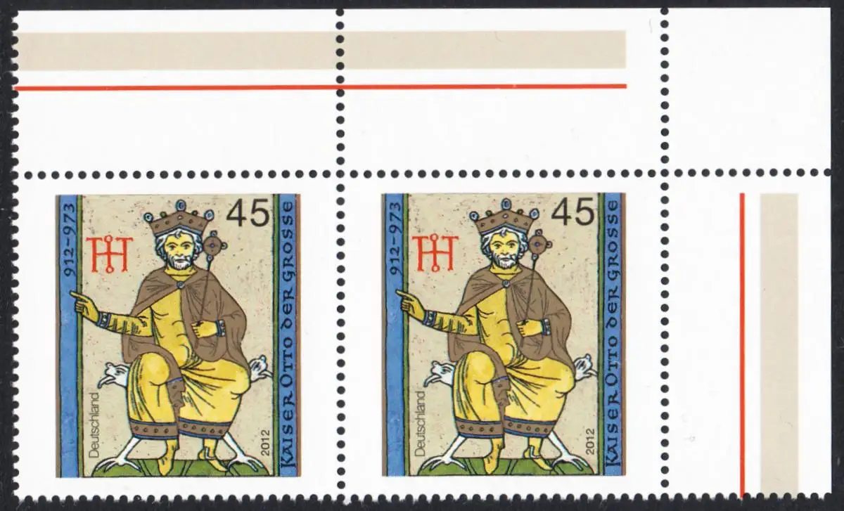 BUND 2012 Michel-Nummer 2949 postfrisch horiz.PAAR ECKRAND oben rechts