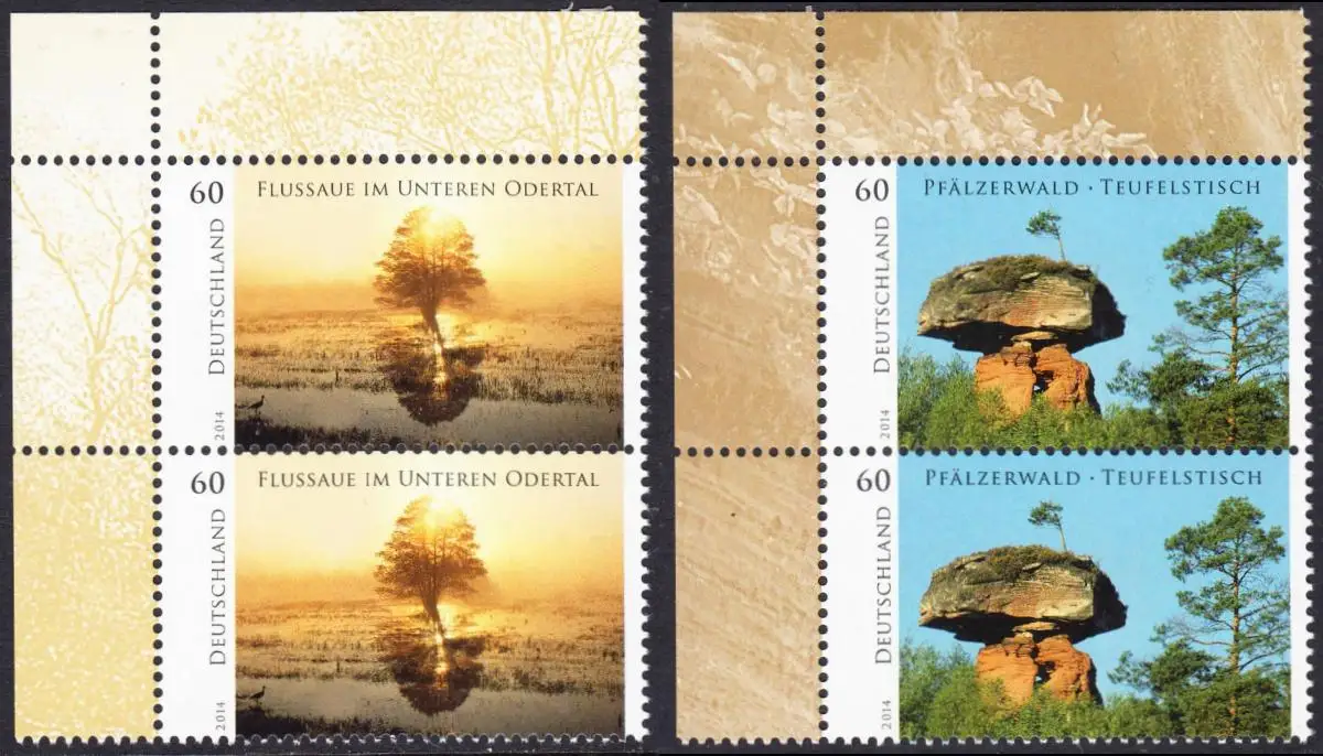 BUND 2014 Michel-Nummer 3059-3060 postfrisch SATZ(2) vert.PAARE ECKRÄNDER oben links