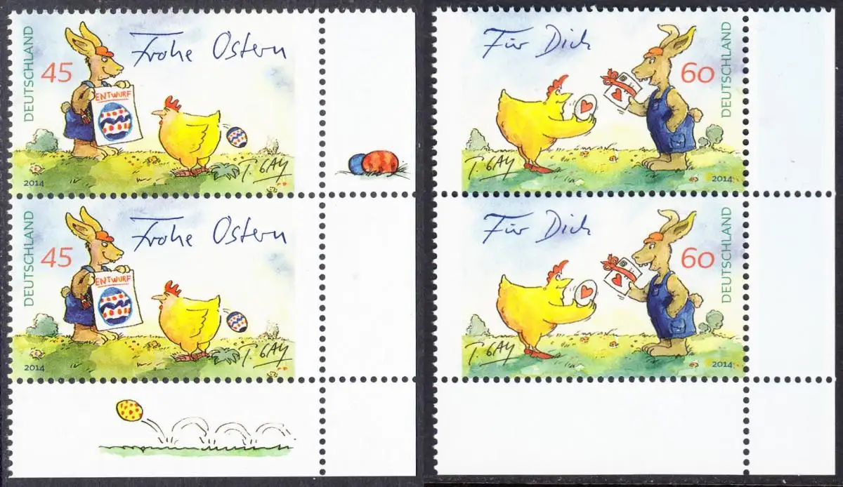 BUND 2014 Michel-Nummer 3063-3064 postfrisch SATZ(2) vert.PAARE ECKRÄNDER unten rechts