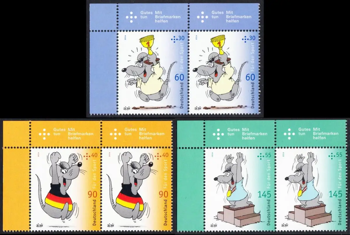 BUND 2014 Michel-Nummer 3075-3077 postfrisch SATZ(3) horiz.PAARE ECKRÄNDER oben links