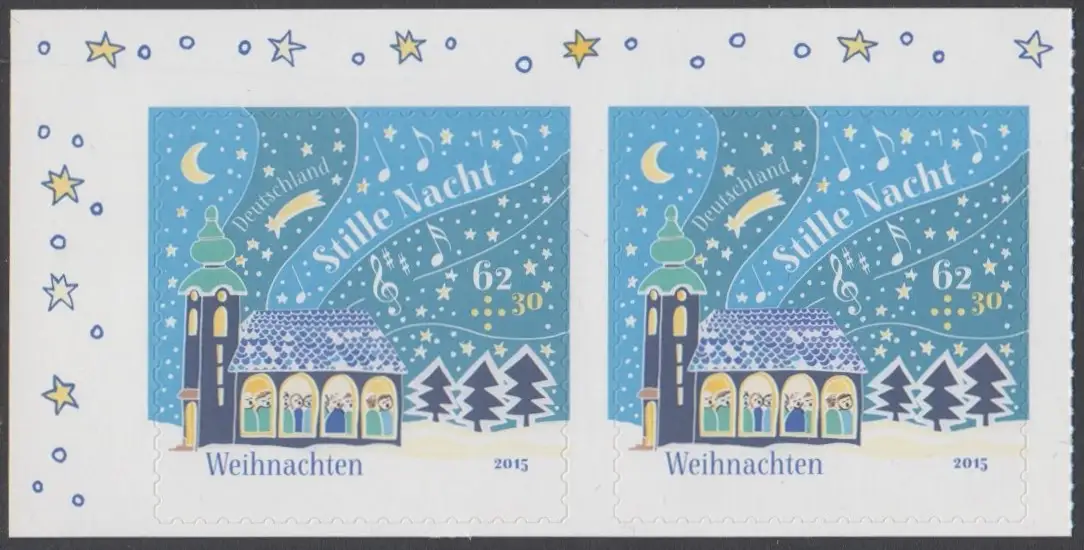BUND 2015 Michel-Nummer 3186 postfrisch horiz.PAAR ECKRAND oben links (aus MH / selbstklebend)