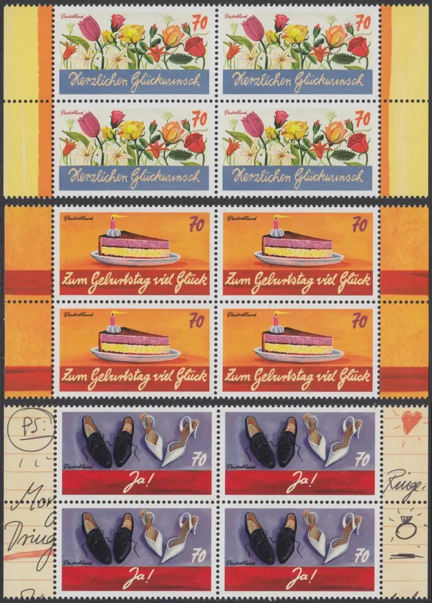 BUND 2016 Michel-Nummer 3232-3234 postfrisch SATZ(3) BLÖCKE RÄNDER rechts/links