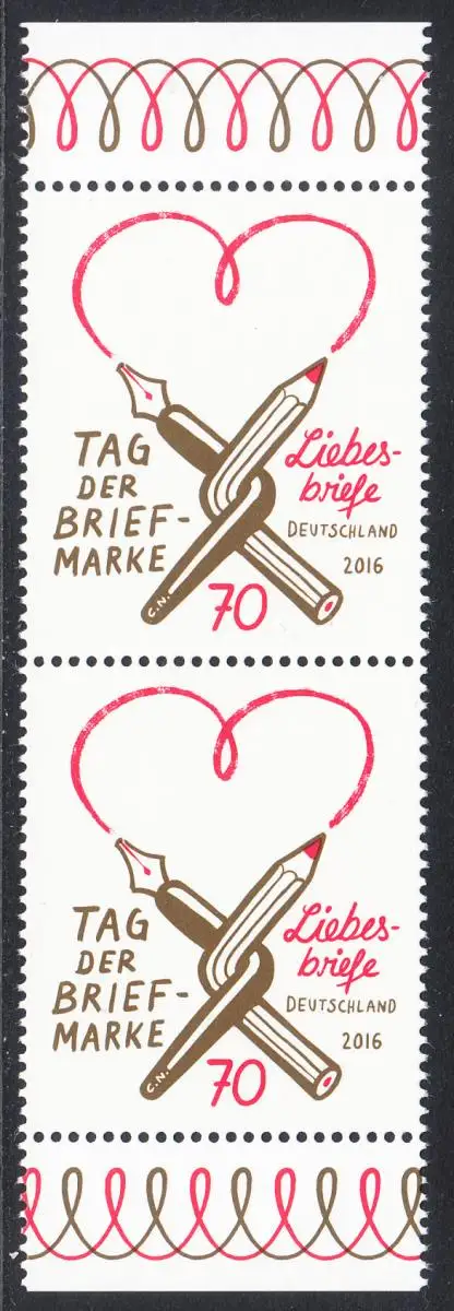 BUND 2016 Michel-Nummer 3259 postfrisch vert.PAAR RÄNDER unten/oben