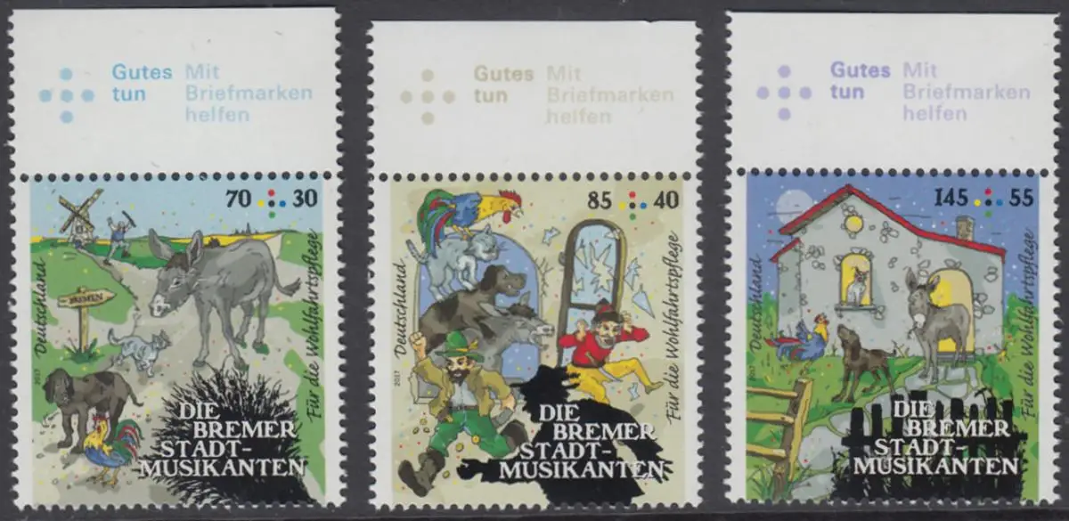 BUND 2017 Michel-Nummer 3282-3284 postfrisch SATZ(3) EINZELMARKEN RÄNDER oben