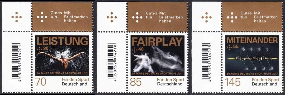 BUND 2017 Michel-Nummer 3307-3309 postfrisch SATZ(3) EINZELMARKEN ECKRÄNDER oben links