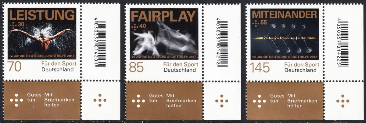 BUND 2017 Michel-Nummer 3307-3309 postfrisch SATZ(3) EINZELMARKEN ECKRÄNDER unten rechts