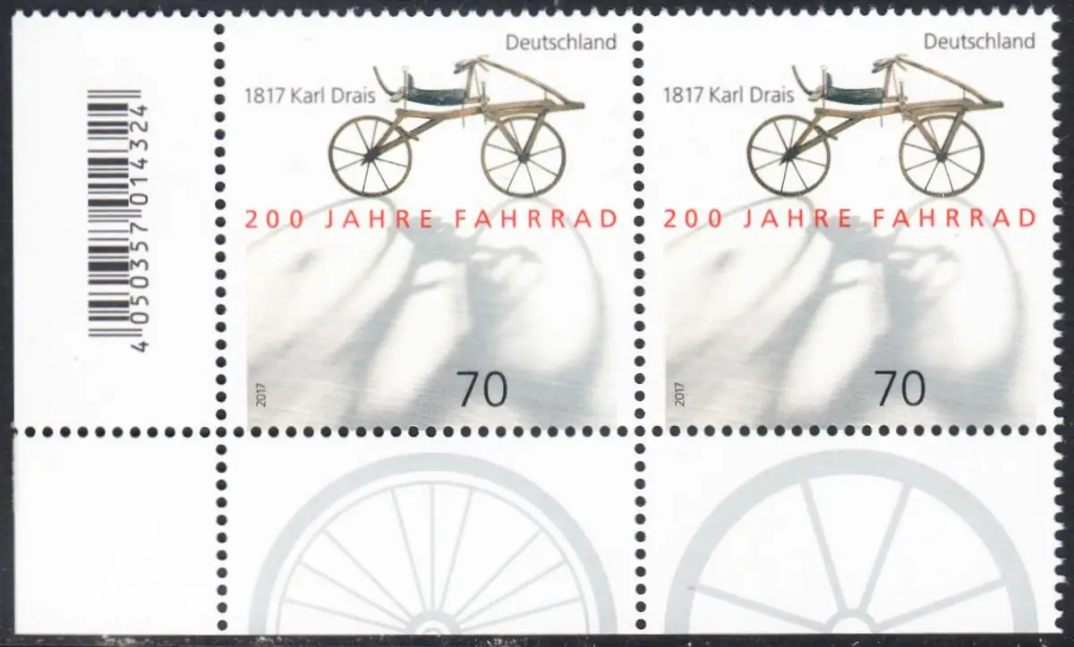 BUND 2017 Michel-Nummer 3320 postfrisch horiz.PAAR ECKRAND unten links