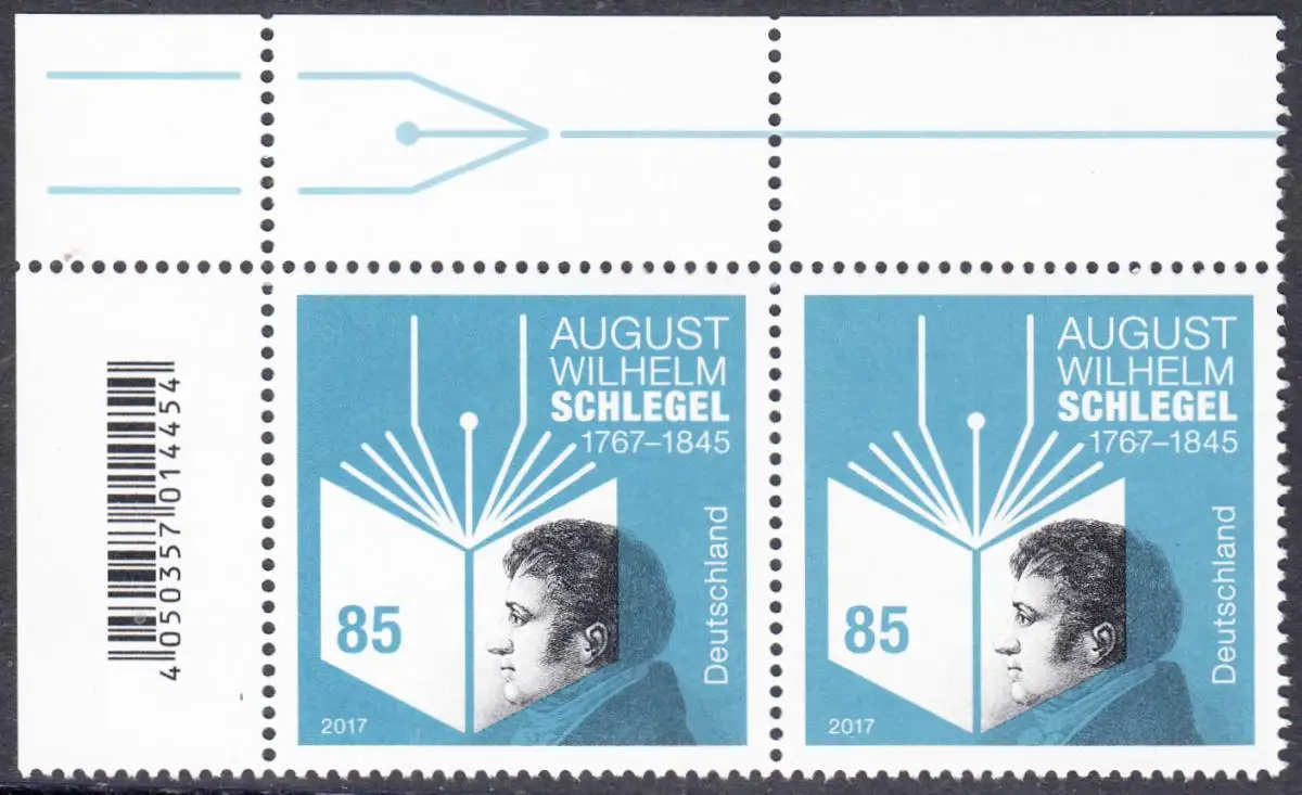 BUND 2017 Michel-Nummer 3332 postfrisch horiz.PAAR ECKRAND oben links