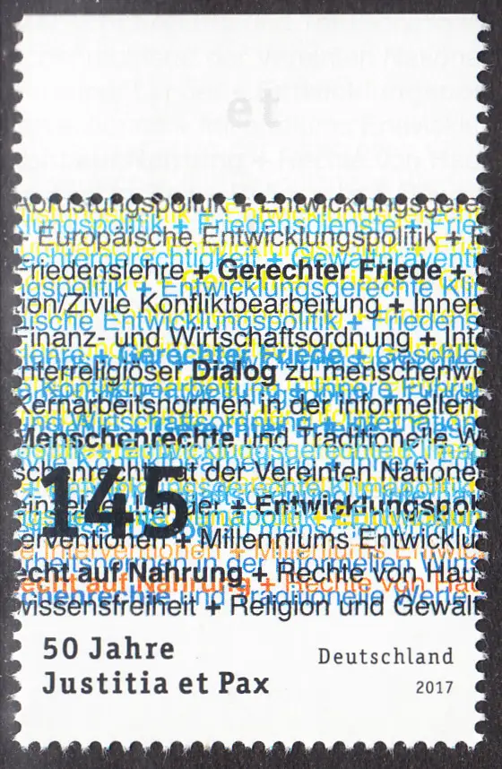 BUND 2017 Michel-Nummer 3339 postfrisch EINZELMARKE RAND oben (c)