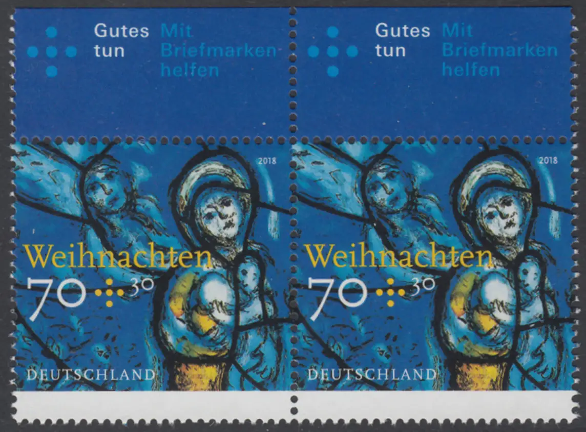 BUND 2018 Michel-Nummer 3418 postfrisch horiz.PAAR RÄNDER oben