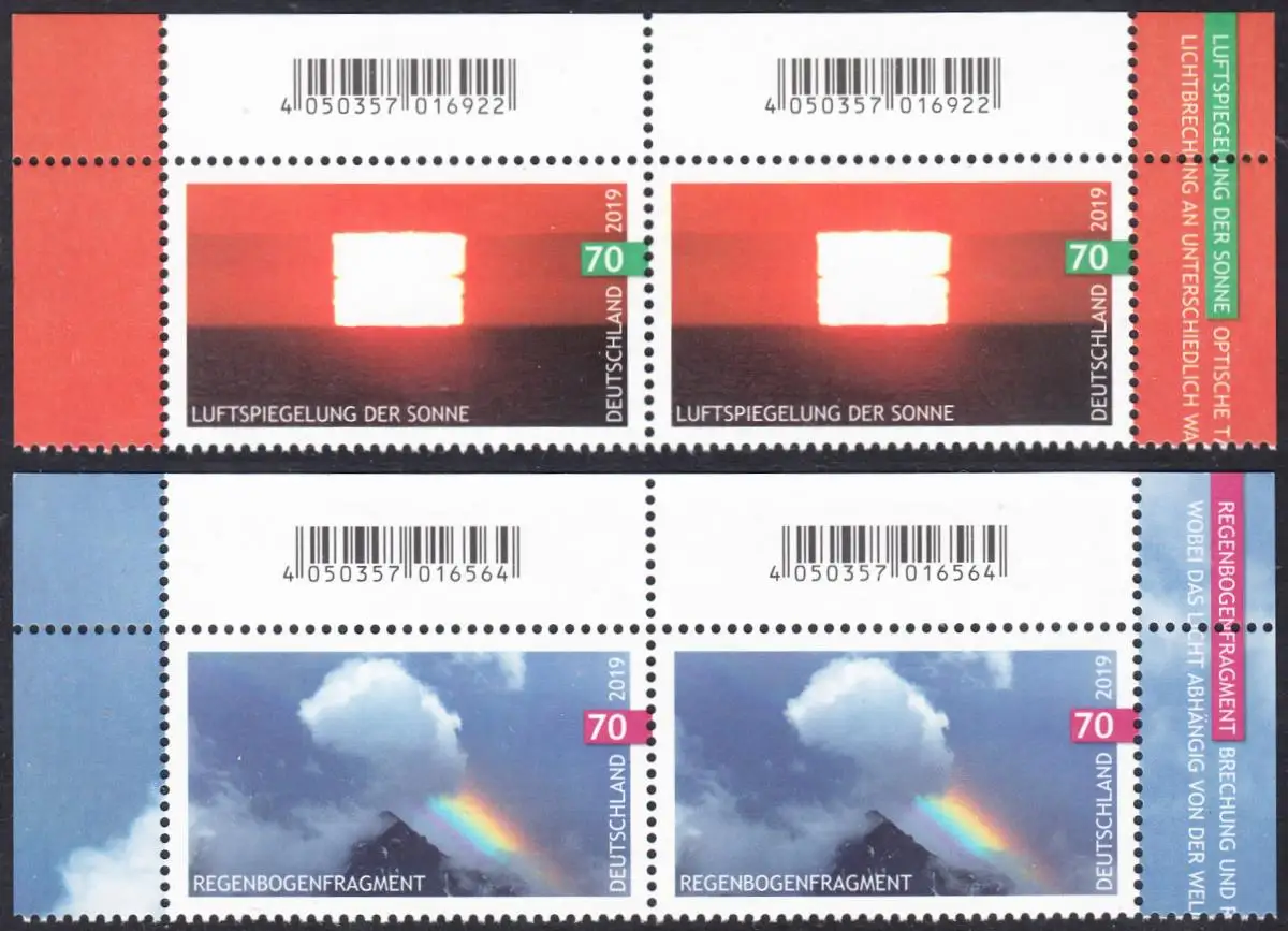 BUND 2019 Michel-Nummer 3441-3442 postfrisch SATZ(2) horiz.PAARE ECKRÄNDER oben rechts/links