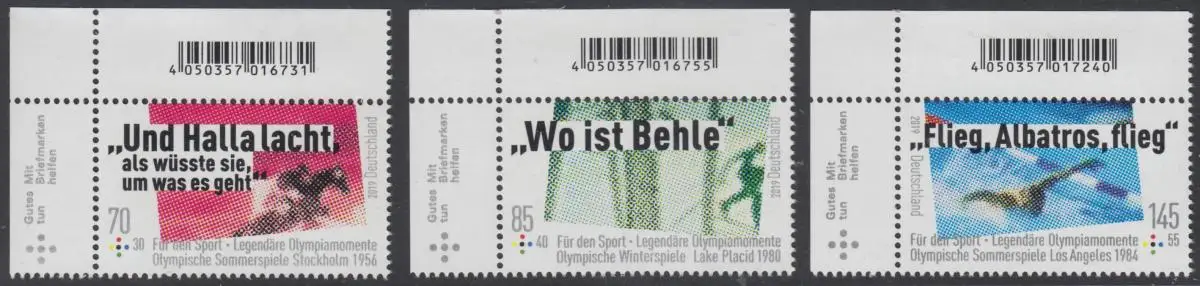 BUND 2019 Michel-Nummer 3460-3462 postfrisch SATZ(3) EINZELMARKEN ECKRÄNDER oben links