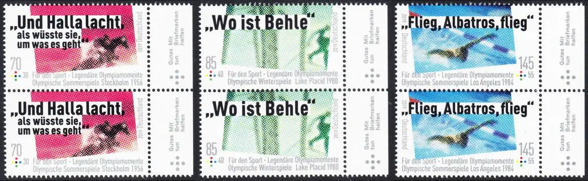 BUND 2019 Michel-Nummer 3460-3462 postfrisch SATZ(3) vert.PAARE RÄNDER rechts