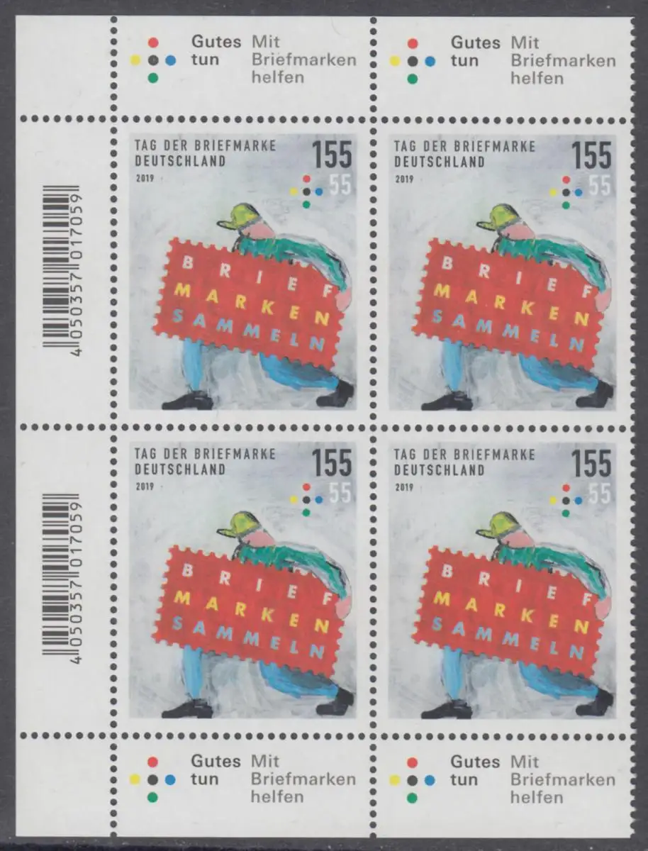 BUND 2019 Michel-Nummer 3491 postfrisch BLOCK ECKRÄNDER oben/unten links