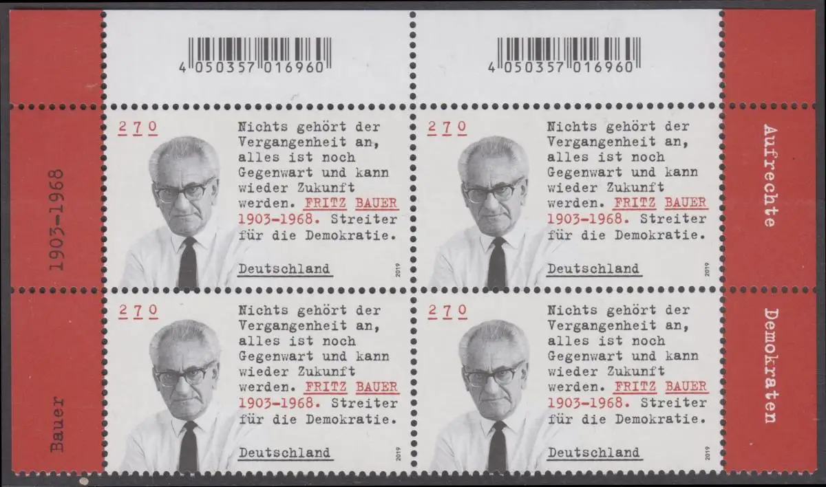 BUND 2019 Michel-Nummer 3502 postfrisch BLOCK ECKRÄNDER oben rechts/links