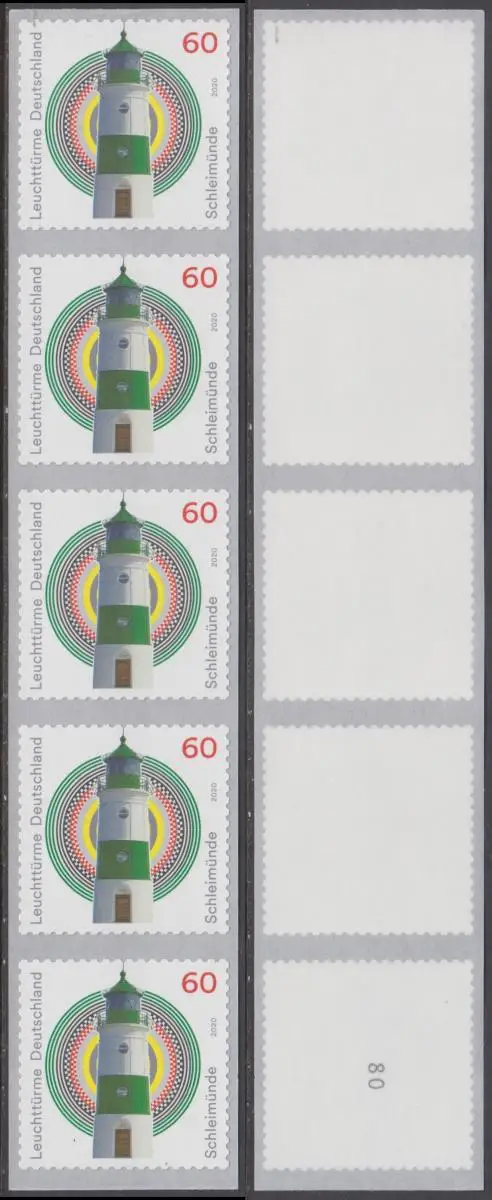 BUND 2020 Michel-Nummer 3555 postfrisch vert.STRIP(5) (coils / selbstklebend) m/ rückseitiger Nummer (80)