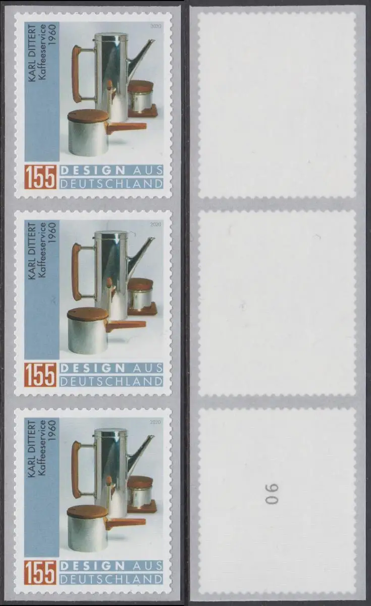 BUND 2020 Michel-Nummer 3570 postfrisch vert.STRIP(3) (coils) (selbstklebend) m/ rücks. Nr. (90)