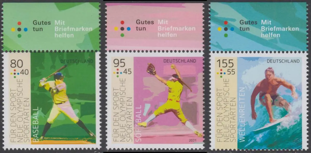 BUND 2021 Michel-Nummer 3602-3604 postfrisch SATZ(3) EINZELMARKEN RÄNDER oben (b)