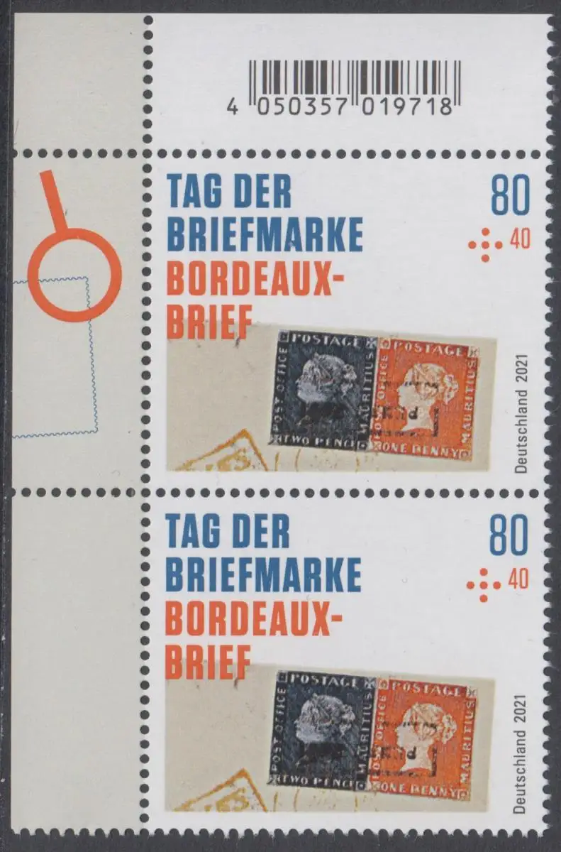 BUND 2021 Michel-Nummer 3623 postfrisch vert.PAAR ECKRAND oben links