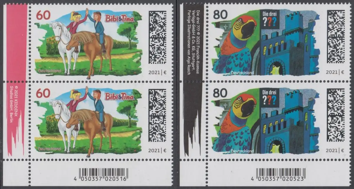 BUND 2021 Michel-Nummer 3648-3649 postfrisch SATZ(2) vert.PAARE ECKRÄNDER unten links