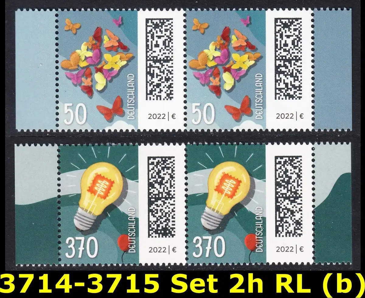 BUND 2022 Michel-# 3714/3715 postfrisch SATZ(2) horiz.PAARE RÄNDER rechts/links