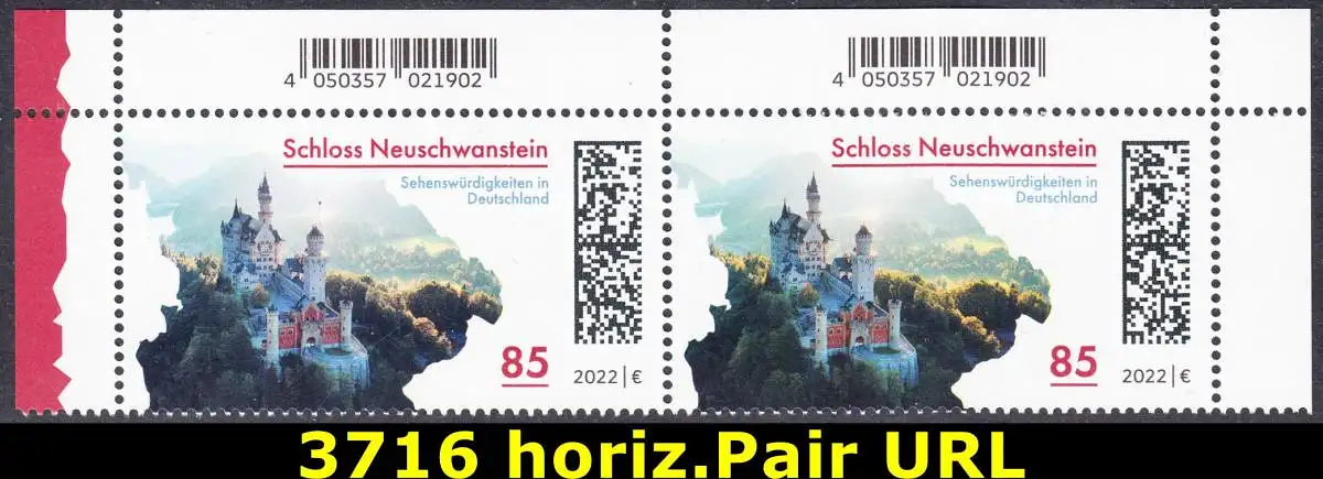 BUND 2022 Michel-# 3716 postfrisch horiz.PAAR ECKRÄNDER oben rechts/links