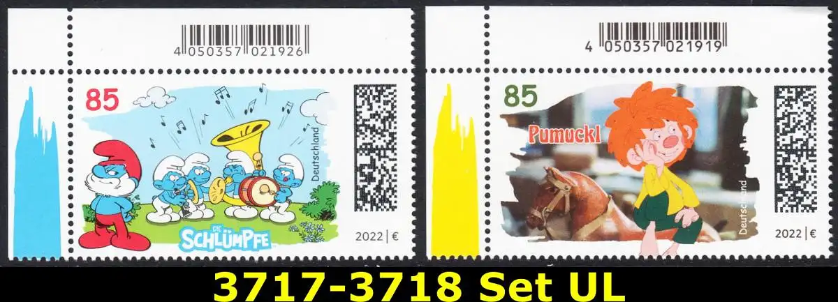 BUND 2022 Michel-# 3717/3718 postfrisch SATZ(2) EINZELMARKEN ECKRÄNDER oben links