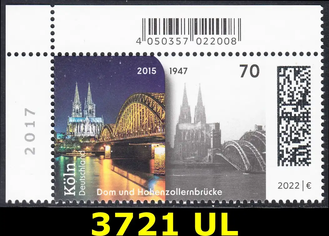 BUND 2022 Michel-# 3721 postfrisch EINZELMARKE ECKRAND oben links