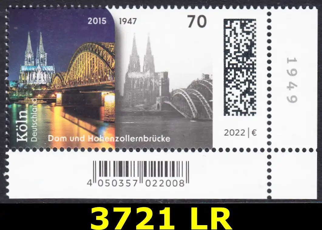 BUND 2022 Michel-# 3721 postfrisch EINZELMARKE ECKRAND unten rechts