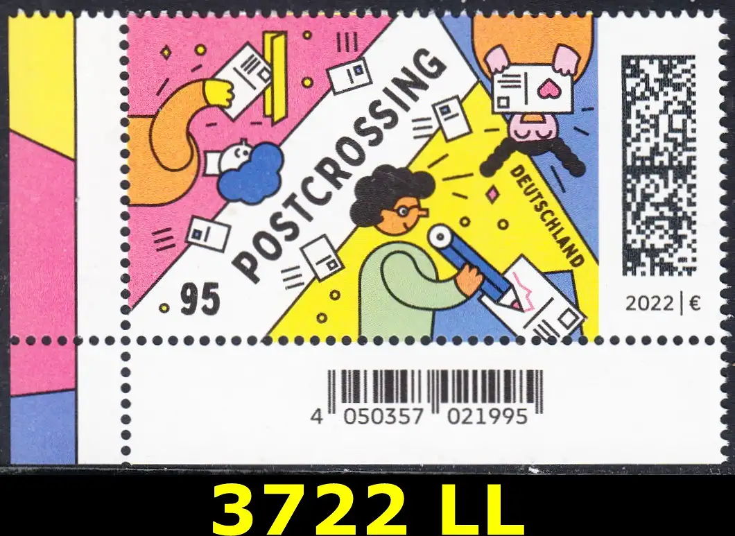 BUND 2022 Michel-# 3722 postfrisch EINZELMARKE ECKRAND unten links