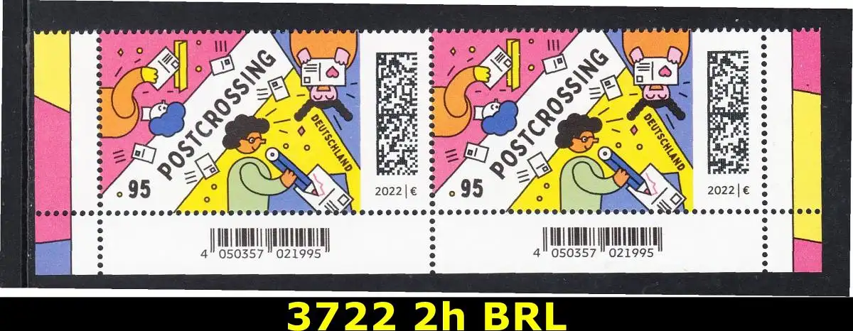 BUND 2022 Michel-# 3722 postfrisch horiz.PAAR ECKRÄNDER unten rechts/links