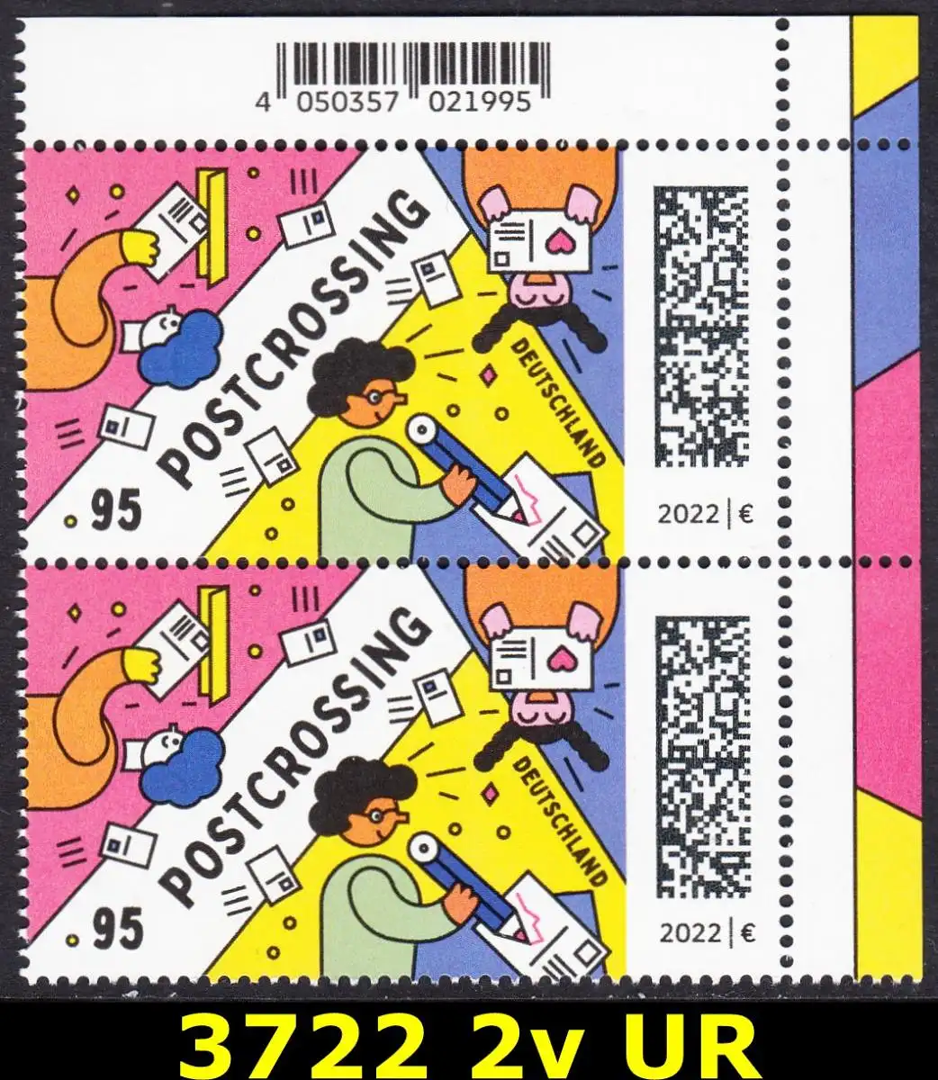 BUND 2022 Michel-# 3722 postfrisch vert.PAAR ECKRAND oben rechts