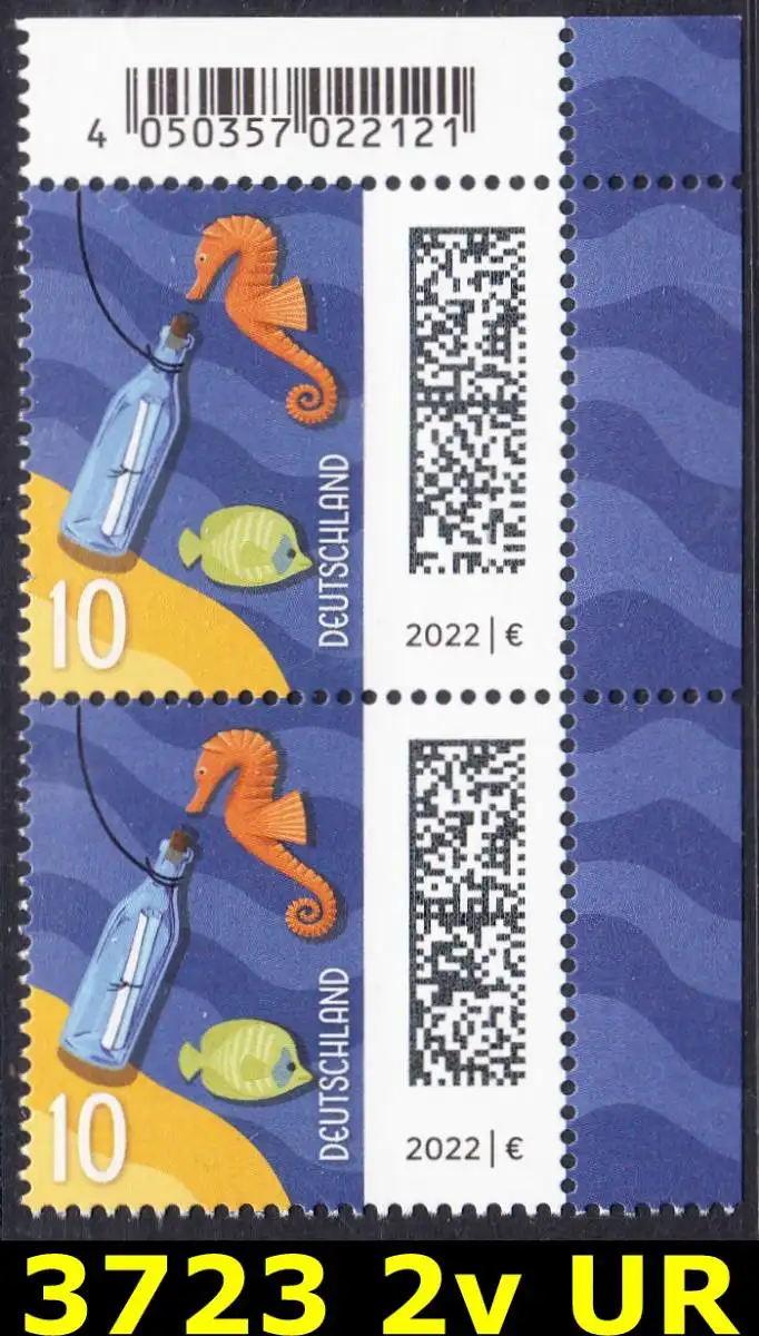 BUND 2022 Michel-# 3723 postfrisch vert.PAAR ECKRAND oben rechts
