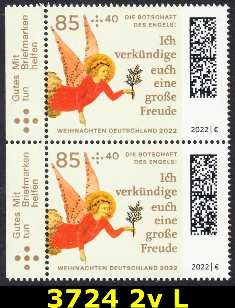 BUND 2022 Michel-# 3724 postfrisch vert.PAAR RÄNDER links