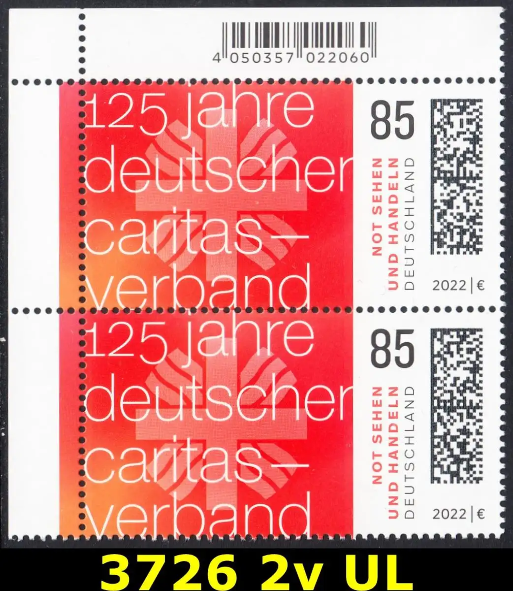 BUND 2022 Michel-# 3726 postfrisch vert.PAAR ECKRAND oben links