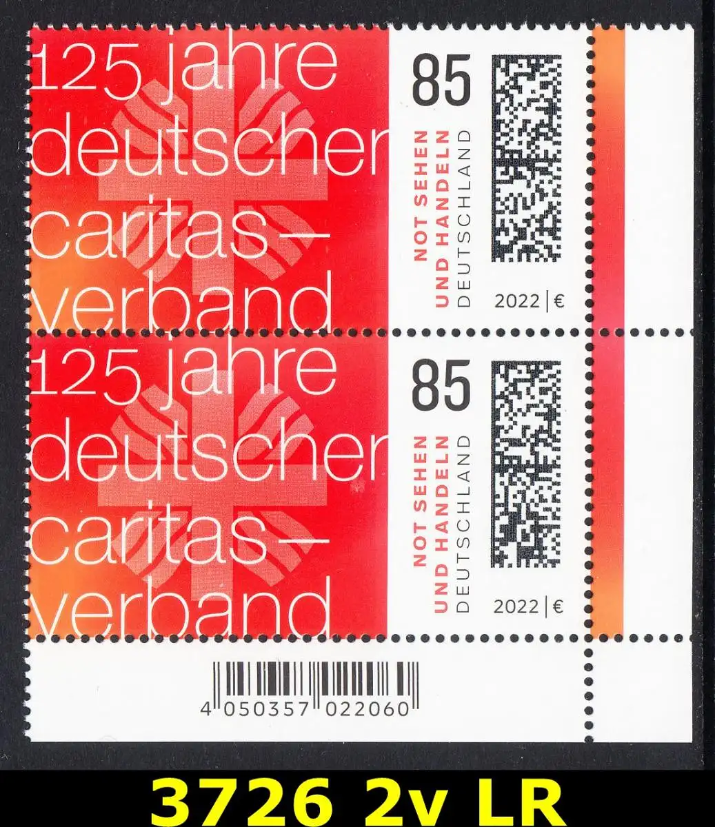 BUND 2022 Michel-# 3726 postfrisch vert.PAAR ECKRAND unten rechts