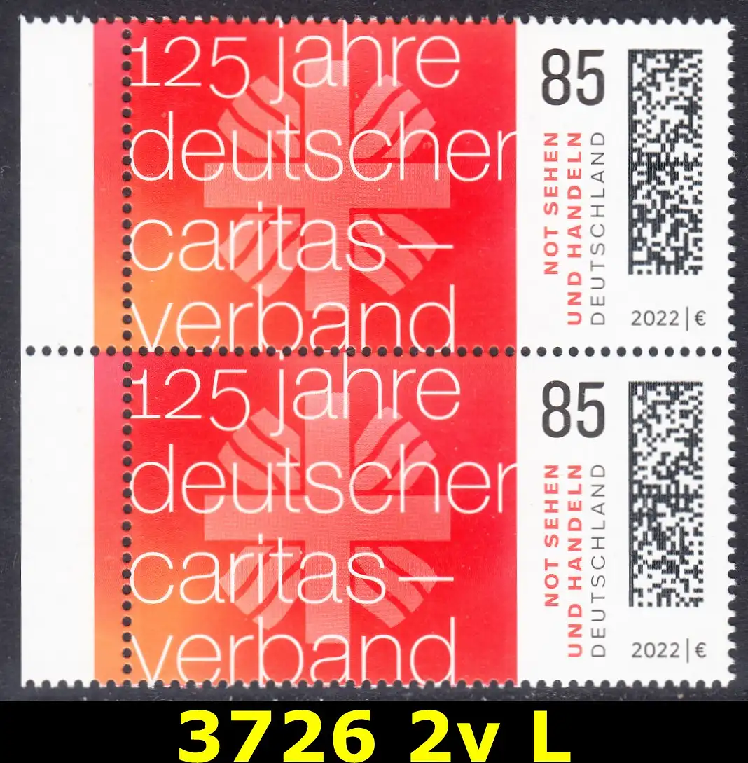 BUND 2022 Michel-# 3726 postfrisch vert.PAAR RÄNDER links