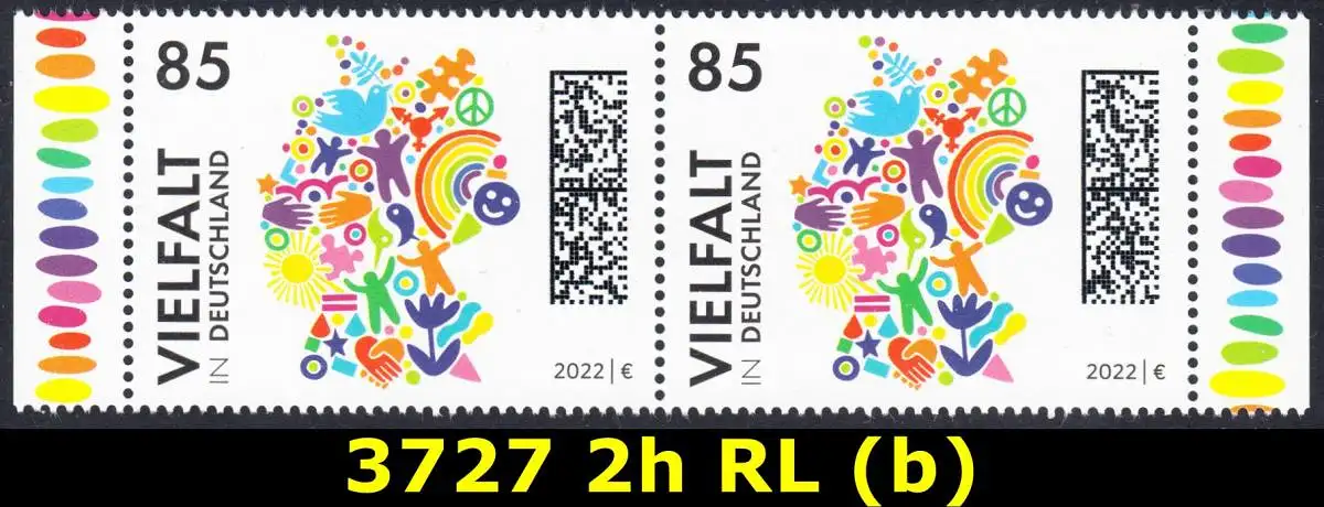BUND 2022 Michel-# 3727 postfrisch horiz.PAAR RÄNDER rechts/links