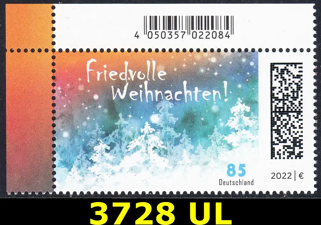 BUND 2022 Michel-# 3728 postfrisch EINZELMARKE ECKRAND oben links