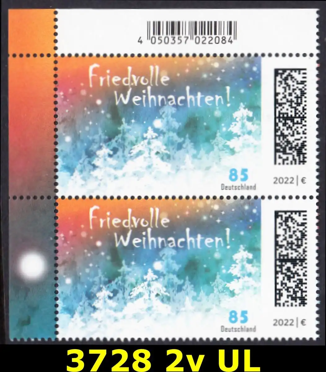 BUND 2022 Michel-# 3728 postfrisch vert.PAAR ECKRAND oben links