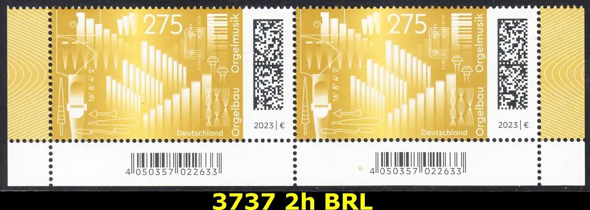BUND 2023 Michel-# 3737 postfrisch horiz.PAAR ECKRÄNDER unten rechts/links