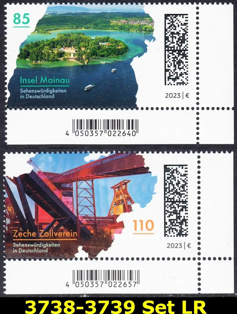 BUND 2023 Michel-# 3738-3739 postfrisch SATZ(2) EINZELMARKEN ECKRÄNDER unten rechts