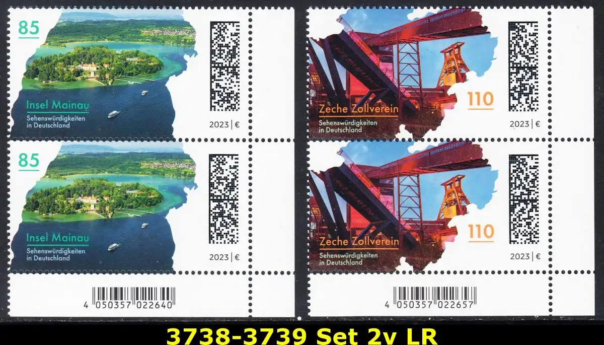 BUND 2023 Michel-# 3738-3739 postfrisch SATZ(2) vert.PAARE ECKRÄNDER unten rechts