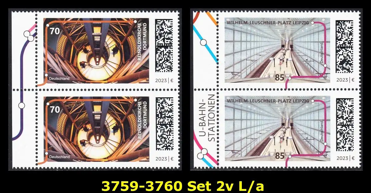 BUND 2023 Michel-# 3759-3760 postfrisch SATZ(2) vert.PAARE RÄNDER links (a)