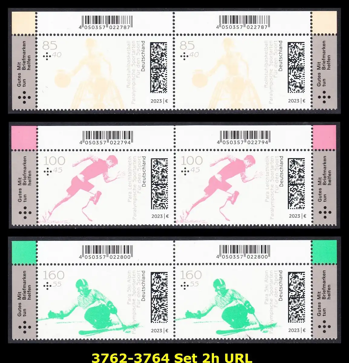 BUND 2023 Michel-# 3762-3764 postfrisch SATZ(3) horiz.PAARE ECKRÄNDER oben rechts/links