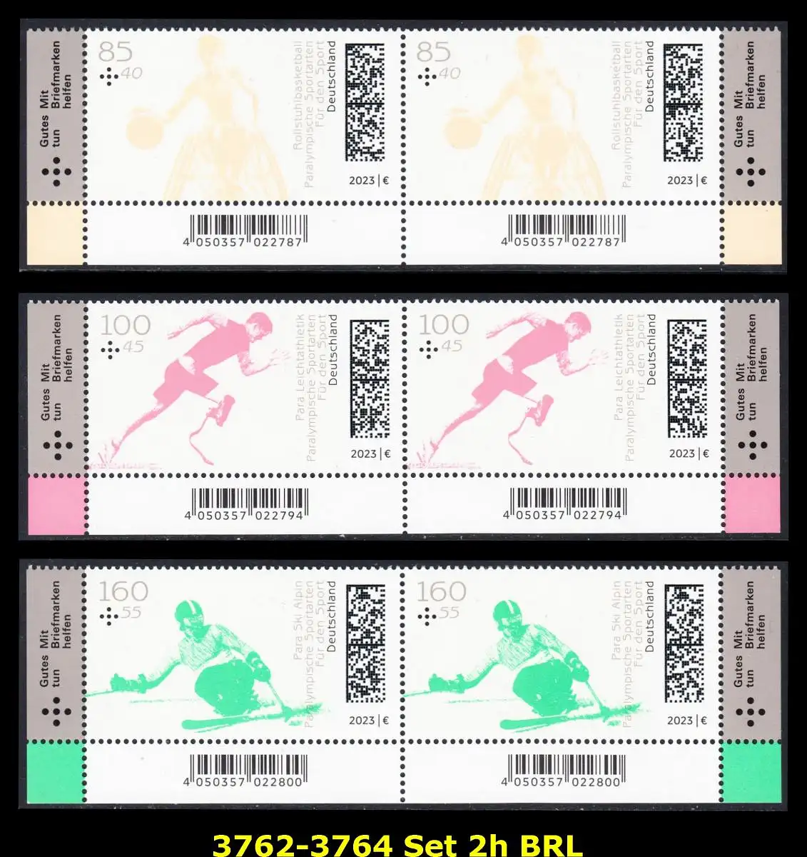 BUND 2023 Michel-# 3762-3764 postfrisch SATZ(3) horiz.PAARE ECKRÄNDER unten rechts/links