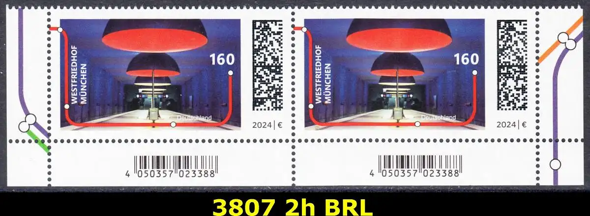 BUND 2024 Michel-# 3807 postfrisch horiz.PAAR ECKRÄNDER unten rechts/links