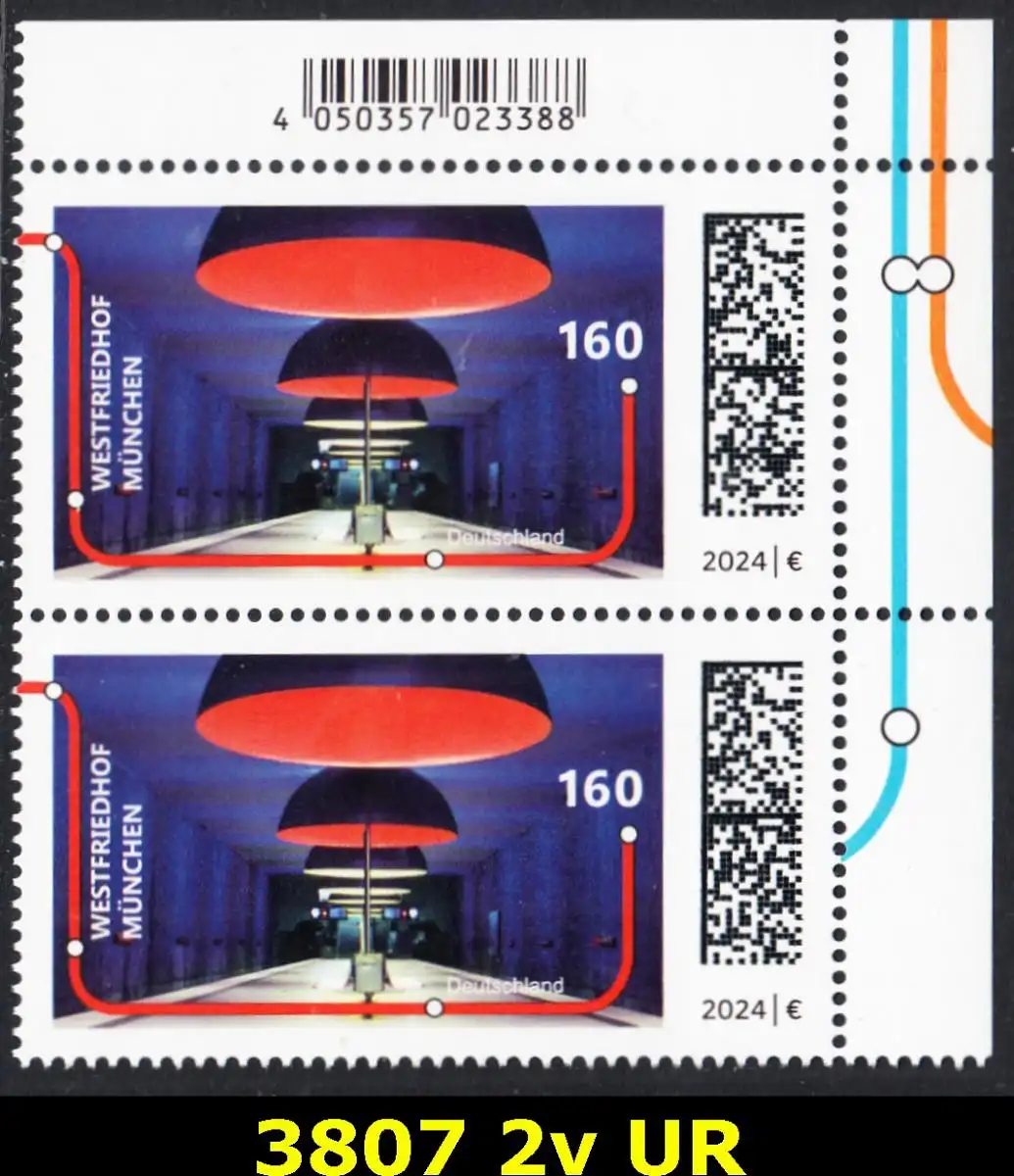 BUND 2024 Michel-# 3807 postfrisch vert.PAAR ECKRAND oben rechts