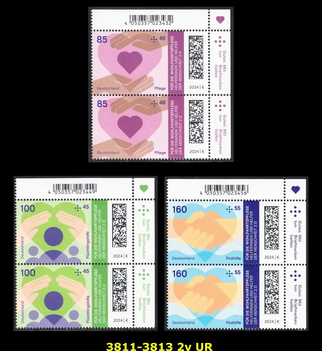 BUND 2024 Michel-# 3811-3813 postfrisch SATZ(3) vert.PAARE ECKRÄNDER oben rechts