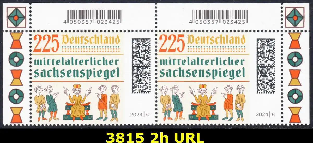 BUND 2024 Michel-# 3815 postfrisch horiz.PAAR ECKRÄNDER oben rechts/links